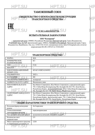 | Предприятие-изготовитель | Kia Motors Corporation. (Kia Motors Corporation.), юридический адрес: 781-1 Soha-Dong Kwangmyung-Shi, Kyungki-Do 423-701, Seoul Korea , Республика Корея., фактический адрес: 781-1 Soha-Dong Kwangmyung- Shi, Kyungki-Do 423-701, Seoul Korea , Республика Корея. |