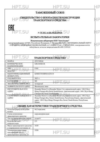 | Марка ТС | HYUNDAI |