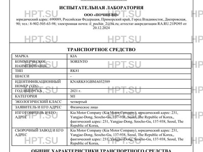 | Предприятие-изготовитель | Kia Motor Company (Kia Motor Company), юридический адрес: 231, Yangjae-Dong, Seocho-Gu, 137-938, Seoul, The Republic of Korea, фактический адрес: 231, Yangjae-Dong, Seocho-Gu, 137-938, Seoul, The Republic of Korea |
