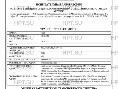 | Предприятие-изготовитель | Ford Motor Company. Carretera a La Colorada KM (Ford Motor Company. Carretera a La Colorada KM), юридический адрес: 4.5, Parque Industrial, 83000 Hermosillo, Son, Мексика, фактический адрес: 4.5, Parque Industrial, 83000 Hermosillo, Son, Мексика |