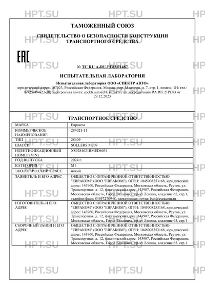 | Номер документа | ТС RU А-RU.РЕ83.01487 |