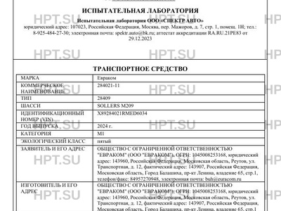 | Базовое ТС / Шасси | SOLLERS M209 |