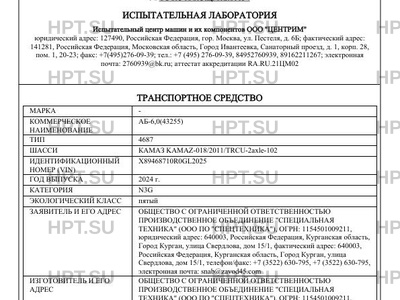 | Базовое ТС / Шасси | КАМАЗ KAMAZ-018/2011/TRCU-2axle-102 |
