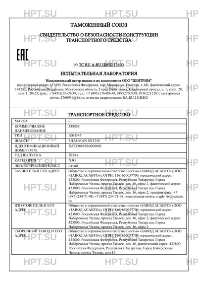 | Базовое ТС / Шасси | SHACMAN SX3258 |