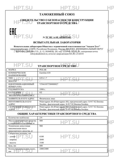 | Предприятие-изготовитель | Polarvagnen Ab (Polarvagnen Ab), юридический адрес: S-917 82 Dorotea Sweden., фактический адрес: S-917 82 Dorotea Sweden. |
