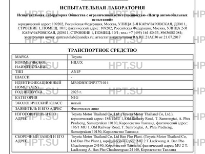 | Предприятие-изготовитель | Toyota Motor Thailand Co, Ltd. (Toyota Motor Thailand Co, Ltd.), юридический адрес: 186/1 MU 1, Old Railway Road, T. Samrongtai, A. Phra Pradaeng, Samutprakan 10130, Королевство Таиланд, фактический адрес: 186/1 MU 1, Old Railway Road, T. Samrongtai, A. Phra Pradaeng, Samutprakan 10130, Королевство Таиланд |