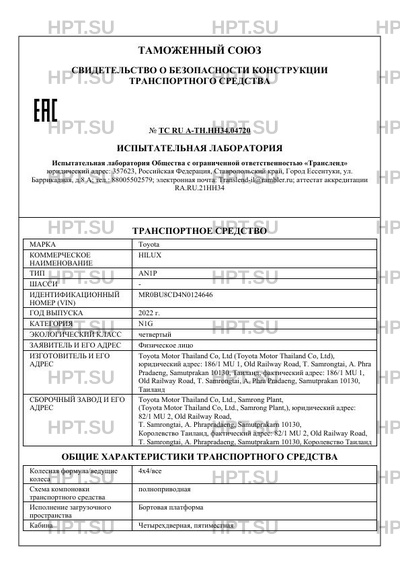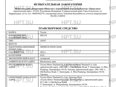 Предприятие-изготовитель Toyota Motor Thailand Co, Ltd (Toyota Motor Thailand Co, Ltd), юридический адрес: 186/1 MU 1, Old Railway Road, T. Samrongtai, A. Phra Pradaeng, Samutprakan 10130, Таиланд, фактический адрес: 186/1 MU 1, Old Railway Road, T. Samrongtai, A. Phra Pradaeng, Samutprakan 10130, Таиланд