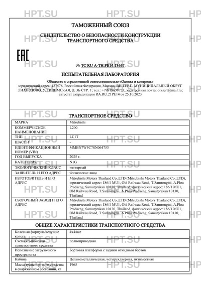| Предприятие-изготовитель | Mitsubishi Motors Thailand Co.,LTD |