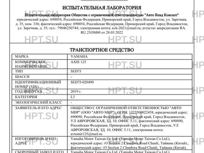 | Марка ТС | YAMAHA |