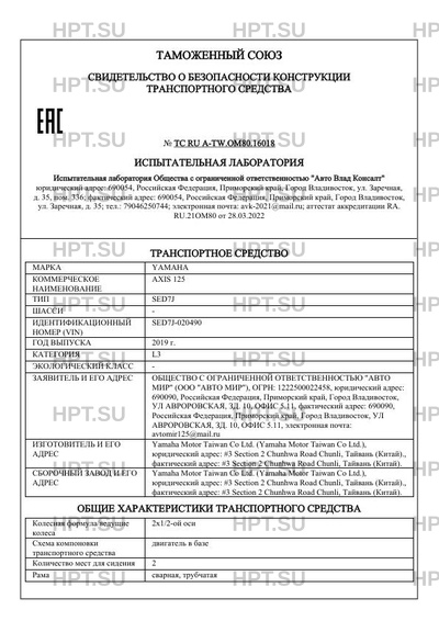 | Коммерческое наименование | AXIS 125 |