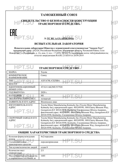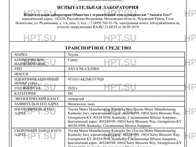 | Предприятие-изготовитель | Toyota Motor Manufacturing Kentucky Inc (Toyota Motor Manufacturing Kentucky Inc), юридический адрес: 403249598, 1001Cherry Blossom Way, Georgetown KY 40324-9598, Kentucky, Соединенные Штаты Америки., фактический адрес: 403249598, 1001Cherry Blossom Way, Georgetown KY 40324-9598, Kentucky, Соединенные Штаты Америки. |
