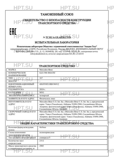| Коммерческое наименование | GLS 580 4MATIC |