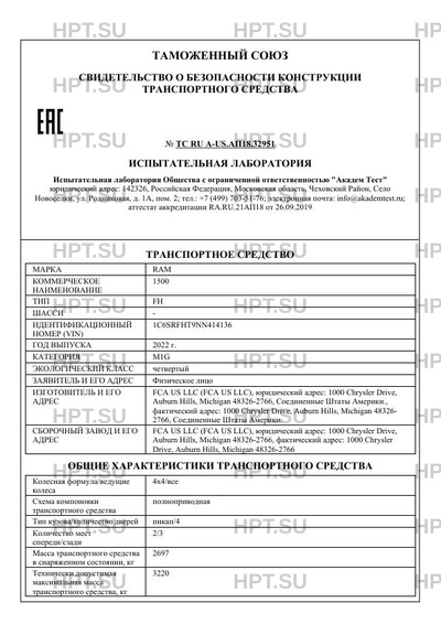 | Марка ТС | RAM |