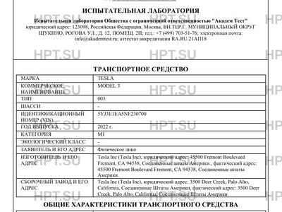 | Предприятие-изготовитель | Tesla Inc (Tesla Inc), юридический адрес: 45500 Fremont Boulevard Fremont, CA 94538, Соединенные штаты Америки., фактический адрес: 45500 Fremont Boulevard Fremont, CA 94538, Соединенные штаты Америки. |