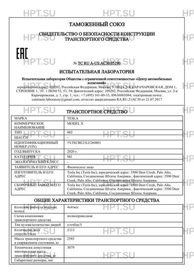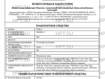 | Предприятие-изготовитель | Tesla Inc (Tesla Inc), юридический адрес: 3500 Deer Creek, Palo Alto, California, Соединенные Штаты Америки., фактический адрес: 3500 Deer Creek, Palo Alto, California, Соединенные Штаты Америки. |