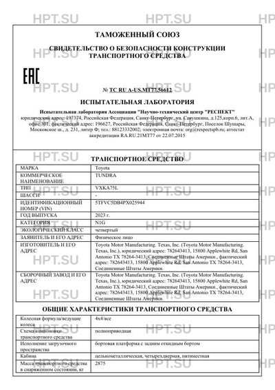 | Предприятие-изготовитель | Toyota Motor Manufacturing. Texas, Inc. (Toyota Motor Manufacturing. Texas, Inc.), юридический адрес: 782643413, 15800 Applewhite Rd, San Antonio TX 78264-3413, Соединенные Штаты Америки., фактический адрес: 782643413, 15800 Applewhite Rd, San Antonio TX 78264-3413, Соединенные Штаты Америки. |