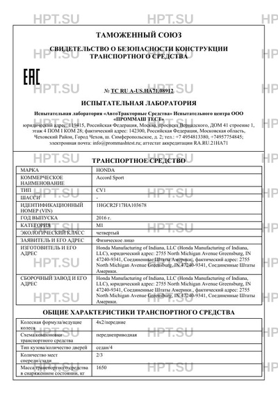 | Марка ТС | HONDA |