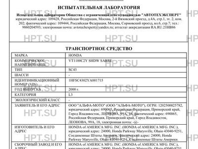 | Предприятие-изготовитель | HONDA of AMERICA MFG. INC. |