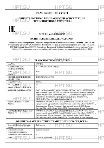 | Номер документа | ТС RU А-US.НВ86.48797 |