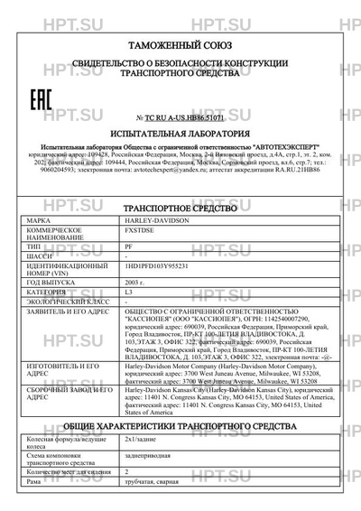 Предприятие-изготовитель Harley-Davidson Motor Company (Harley-Davidson Motor Company), юридический адрес: 3700 West Juneau Avenue, Milwaukee, WI 53208, фактический адрес: 3700 West Juneau Avenue, Milwaukee, WI 53208