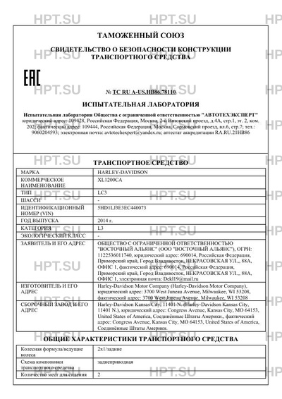 Предприятие-изготовитель Harley-Davidson Motor Company (Harley-Davidson Motor Company), юридический адрес: 3700 West Juneau Avenue, Milwaukee, WI 53208, фактический адрес: 3700 West Juneau Avenue, Milwaukee, WI 53208