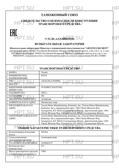 | Номер документа | ТС RU А-US.НВ86.96569 |