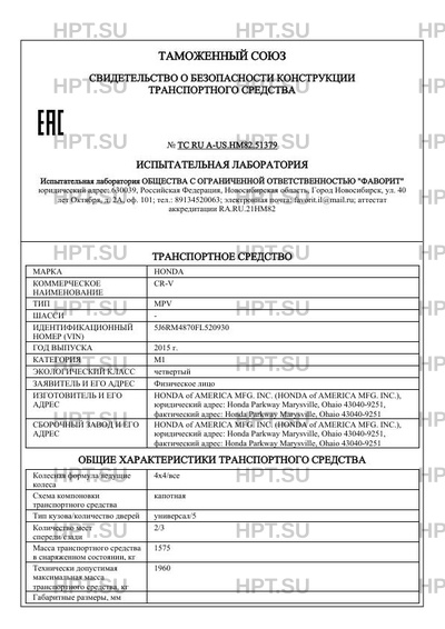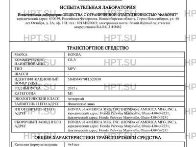 | Предприятие-изготовитель | HONDA of AMERICA MFG. INC. (HONDA of AMERICA MFG. INC.), юридический адрес: Honda Parkway Marysville, Ohaio 43040-9251, фактический адрес: Honda Parkway Marysville, Ohaio 43040-9251 |