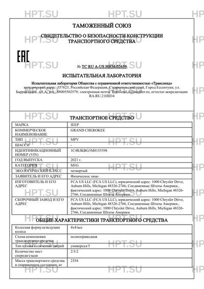| Номер документа | ТС RU А-US.НН34.02659 |