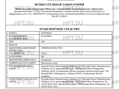 | Орган по сертификации | ИЛ ООО "Трансленд" |