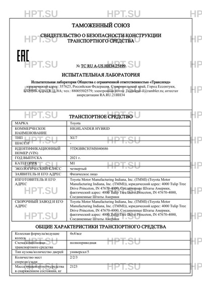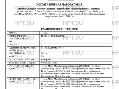 | Коммерческое наименование | HIGHLANDER HYBRID |