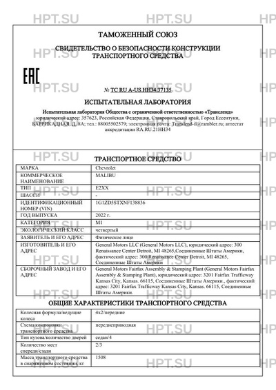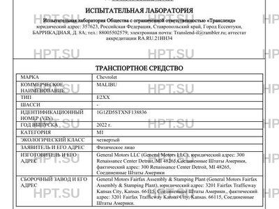 Предприятие-изготовитель General Motors LLC (General Motors LLC), юридический адрес: 300 Renaissance Center Detroit, MI 48265,Соединенные Штаты Америки, фактический адрес: 300 Renaissance Center Detroit, MI 48265, Соединенные Штаты Америки
