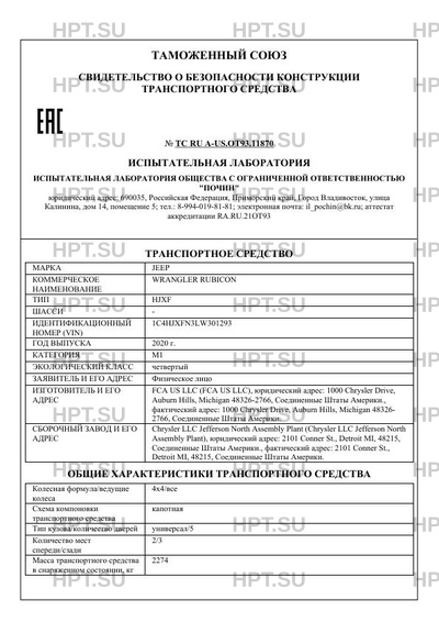 Коммерческое наименование WRANGLER RUBICON