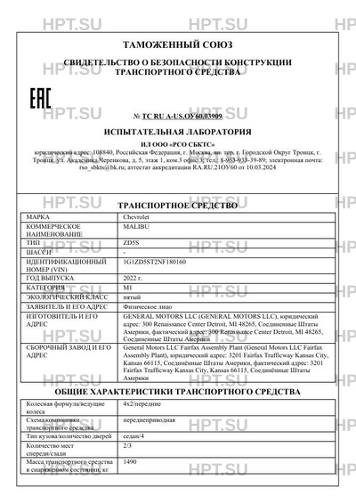 Базовое ТС / Шасси