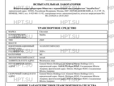 | Предприятие-изготовитель | General Motors Holdings LLC (General Motors Holdings LLC), юридический адрес: Detroit, Michigan 48265, Соединенные Штаты Америки, фактический адрес: Detroit, Michigan 48265, Соединенные Штаты Америки |