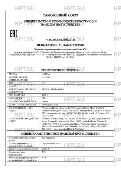 | Предприятие-изготовитель | "American Honda Motor Co Inc" ("American Honda Motor Co Inc"), юридический адрес: 902482702, 100 W Alondra Blvd, Gardena CA 90248- 2702, фактический адрес: 902482702, 100 W Alondra Blvd, Gardena CA 90248-2702 |