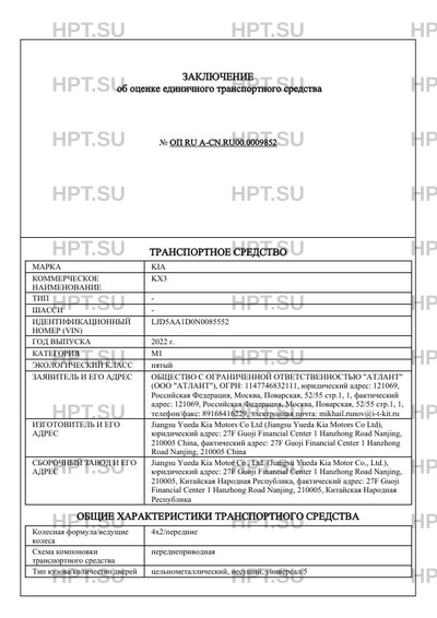 | Марка ТС | KIA |