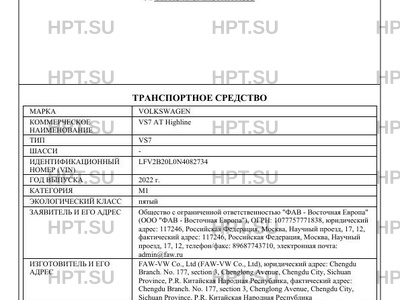 | Предприятие-изготовитель | FAW-VW Co., Ltd |