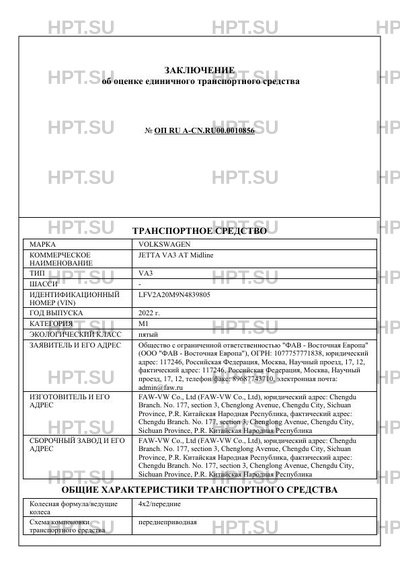 | Коммерческое наименование | JETTA VA3 AT Midline |