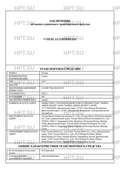 | Коммерческое наименование | Camry |