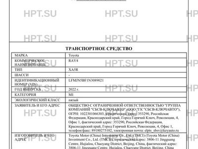 | Предприятие-изготовитель | Toyota Motor (China) Investment Co., Ltd. (TMCI) |