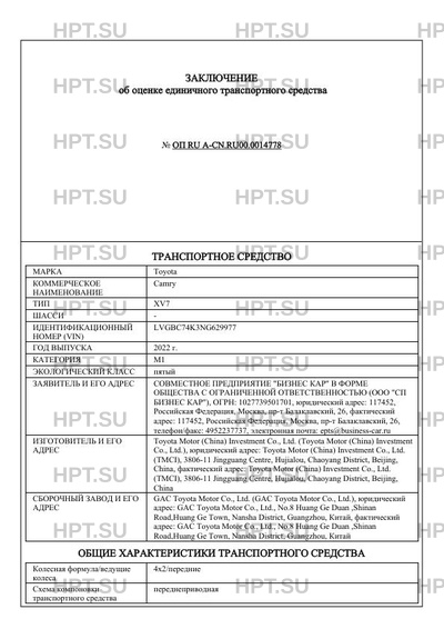 | Предприятие-изготовитель | Toyota Motor (China) Investment Co., Ltd. |