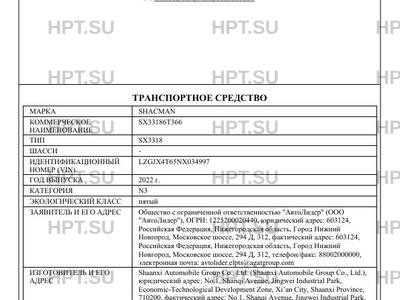 | Предприятие-изготовитель | Shaanxi Automobile Group Co., Ltd. (Shaanxi Automobile Group Co., Ltd.), юридический адрес: No.1, Shanqi Avenue, Jingwei Industrial Park, Economic-Technological Development Zone, Xian City, Shaanxi Province, 710200, фактический адрес: No.1, Shanqi Avenue, Jingwei Industrial Park, Economic-Technological Development Zone, Xian City, Shaanxi Province, 710200 |
