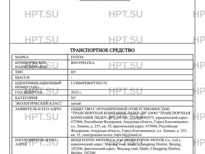 | Марка ТС | FOTON |