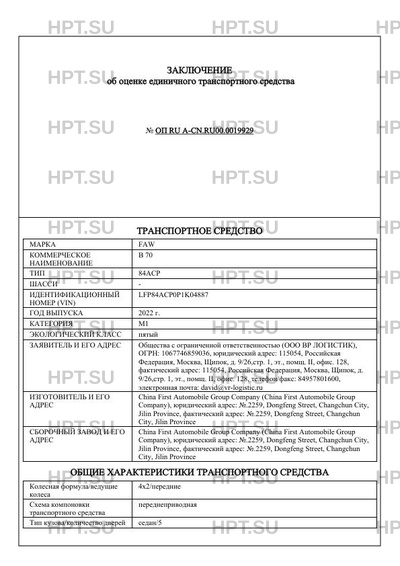 | Предприятие-изготовитель | China First Automobile Group Company |