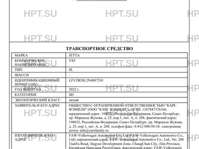 | Предприятие-изготовитель | FAW-Volkswagen Automotive Co., Ltd |