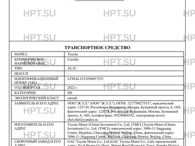 | Предприятие-изготовитель | Toyota Motor (China) Investment Co., Ltd. (TMCI |