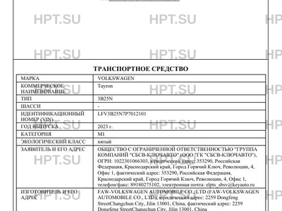 Предприятие-изготовитель FAW-VOLKSWAGEN AUTOMOBILE CO., LTD (FAW-VOLKSWAGEN AUTOMOBILE CO., LTD), юридический адрес: 2259 Dongfeng StreetChangchun City, Jilin 13001, China, фактический адрес: 2259 Dongfeng StreetChangchun City, Jilin 13001, China
