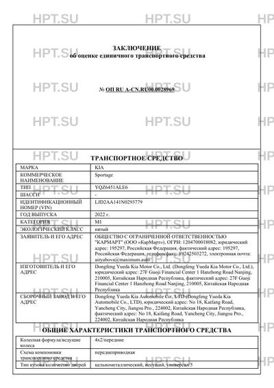 | Коммерческое наименование | Sportage |