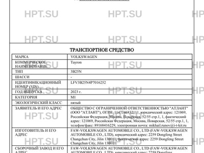 | Предприятие-изготовитель | FAW-VOLKSWAGEN AUTOMOBILE CO., LTD |