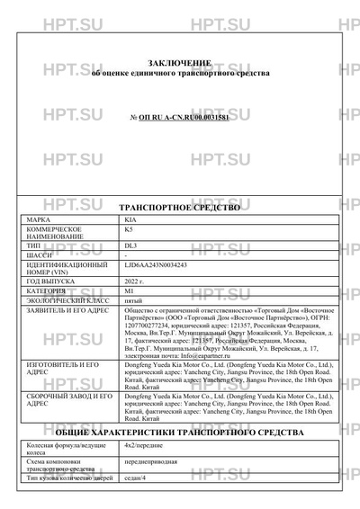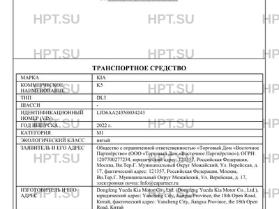 Предприятие-изготовитель Dongfeng Yueda Kia Motor Co., Ltd.